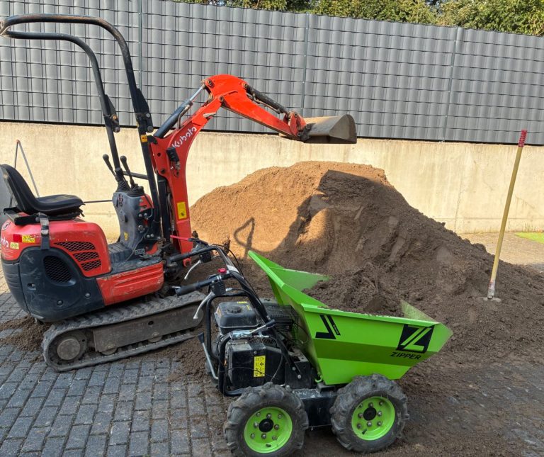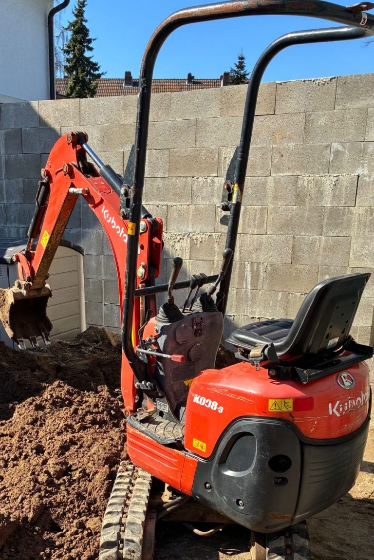 Unser Bagger kommen in jeden Garten max..70 cm b x 150 cm h , mit einer Grabtiefe von 200 cm , und 9,2 to Zugkraft .