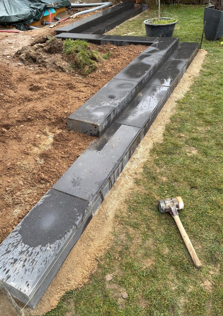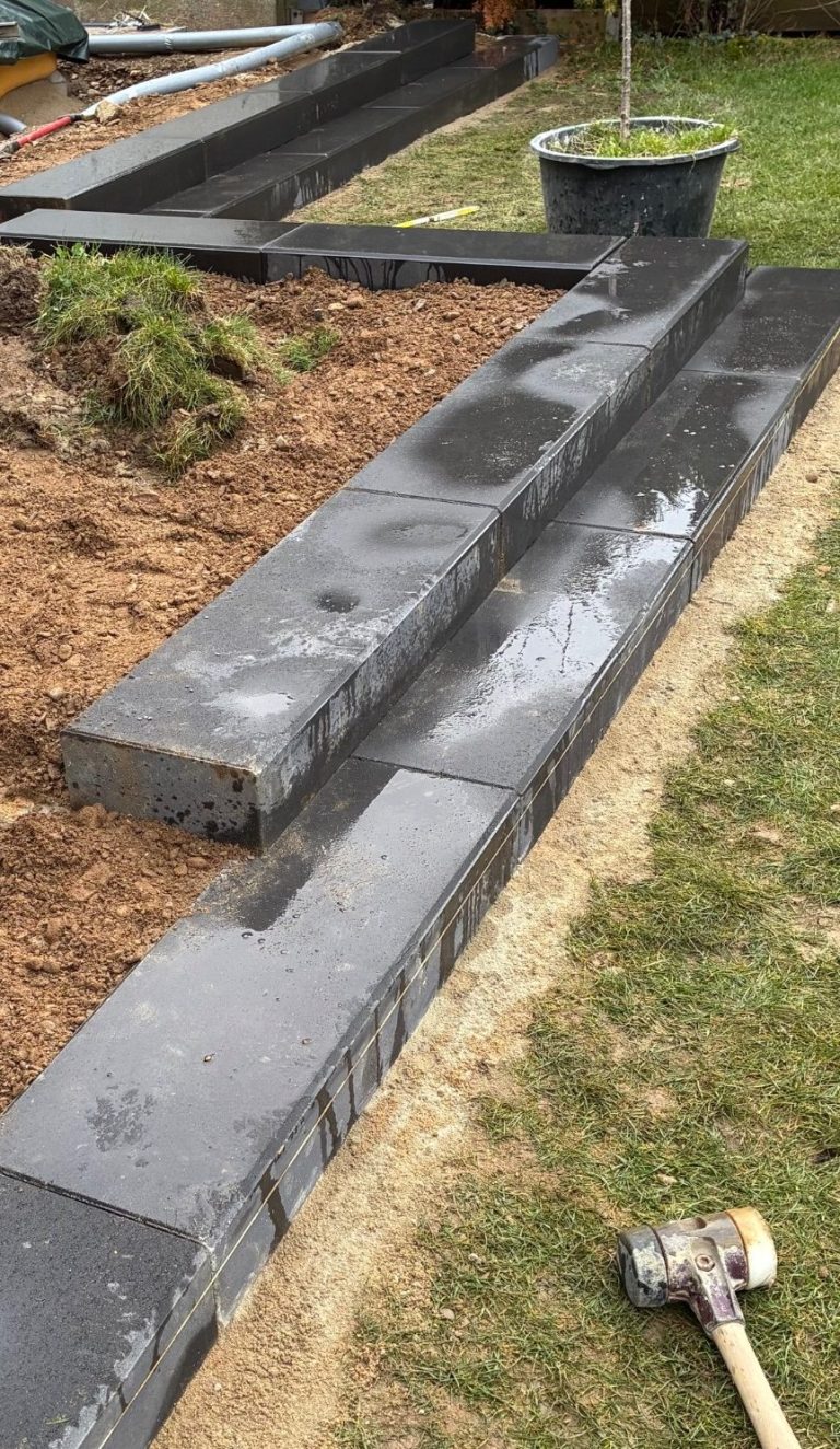Auch 100x35x15 cm Blockstufen setzen Wir ihnen präzise eine , und das alles ohne Kran , oder Radlader .