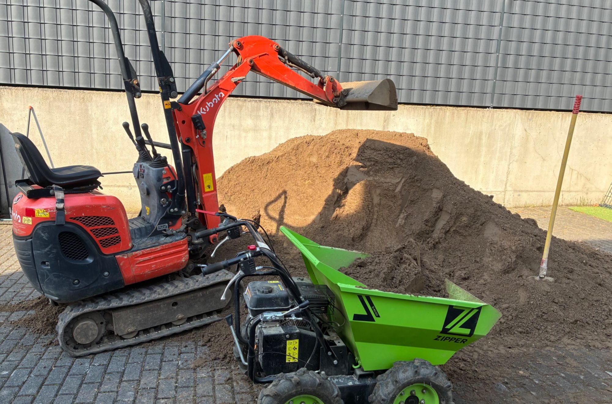 Unser Bagger kommen in jeden Garten max..70 cm b x 150 cm h , mit einer Grabtiefe von 200 cm , und 9,2 to Zugkraft .